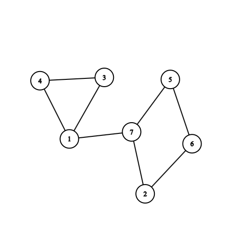 Chu trình đơn dài nhất là ~7 \rightarrow 5 \rightarrow 6 \rightarrow 2 \rightarrow 7~, gồm ~4~ đoạn đường.